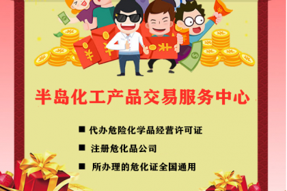 山东半岛化工产品交易服务中心,位于美丽的海滨城市山东日照市。我们是市委市政府合作专业危化品企业服务平台,于2016年正式成立,面向全国办理危险化学品经营许可证,注册危化品公司,所办