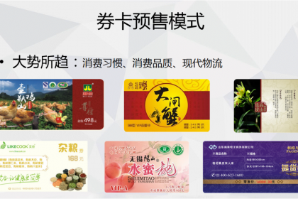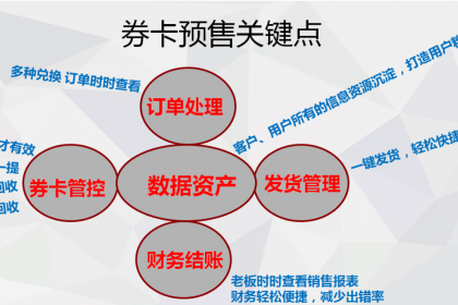 于企业而言1.用卡券代替实物提前售卖到消费者的手上,可以拉长这个企业的销售时间,原来企业是等产品上市后,再去销售,现在企业可以在产品上市前售卖券卡到产品下市一直卖,这个销售时间更大