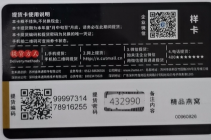 生鲜礼品卡生产,牛排兑换卡券大闸蟹蟹券,金禾通大闸蟹提货系统,一次性防伪礼卡,二维码防伪卡,礼盒提货软件,预售卡兑换系统一、编码:1、防伪编码变动二维码+16位防伪编码+6位数随机