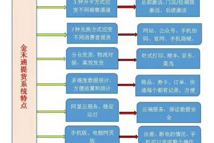 金禾通卡券兑换管理系统 提货系统功能1、提货方式多样:只要可以上网的地方都可以提货,(微信公众号吸粉提货、上网、智能手机扫码、人工客服、专卖店)2、数据:阿里云(每年投入