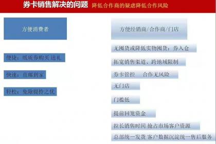 山货大礼包利用礼品卡券的模式适合吗合适的,卡券模式对于企业而言,于企业而言1.用卡券代替实物提前售卖到消费者的手上,可以拉长这个企业的销售时间,原来企业是等产品上市后,再去销售,现