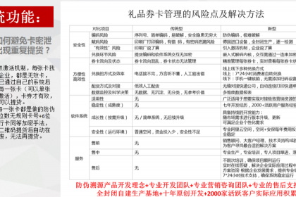 1.变动二维码+16位的防伪码+6位密码三重防伪杜绝仿冒,每张礼品卡券都是的一一对应,扫描二维码直接进入提货流程,不需要输入卡号直接输入密码即可完成子母校验。2.我公司完全全封闭式